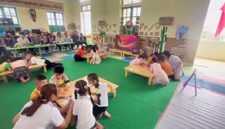 Hiểu được tầm quan trọng của phương pháp giáo dục STEAM, thực hiện kế hoạch chỉ đạo của Phòng Giáo dục và Đào tạo Vĩnh Bảo về việc tiếp cận các Phương pháp GD hiện đại trong các trường Mầm non. Ban giám hiệu nhà trường đã xây dựng kế hoạch đưa một số nội dung ứng dụng phương pháp GD STEAM vào kế hoạch giảng dạy tại các lớp. Hưởng ứng tích cực phương pháp dạy học tiên tiến được nhà trường triển khai, giáo viên cũng đã mạnh dạn áp dụng phương pháp giáo dục STEAM vào các hoạt động hàng ngày.