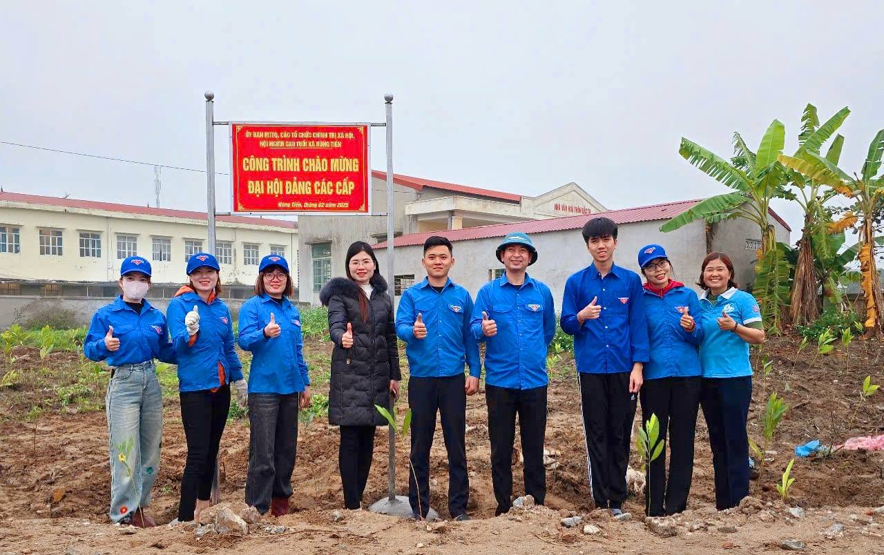 Hưởng ứng Kế hoạch liên tịch của MTTQ, các đoàn thể chính trị - xã hội về tổ chức phong trào thi đua yêu nước chào mừng Đại hội Đảng các cấp, Chi đoàn trường Mầm non tích cực cùng Đoàn thanh niên xã Hùng Tiến tham gia hoạt động trồng cây xanh nhằm góp phần bảo vệ môi trường, tạo cảnh quan xanh - sạch - đẹp cho địa phương.
