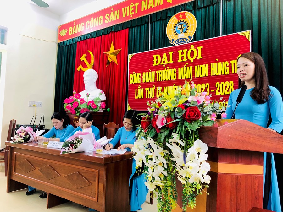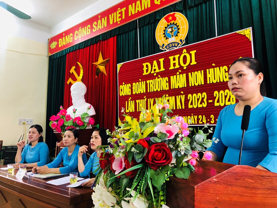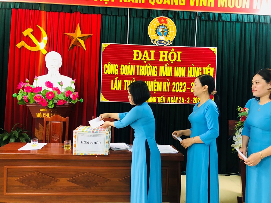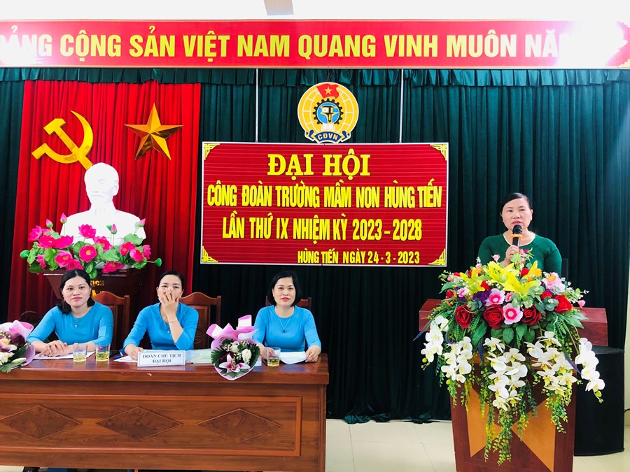 Thực hiện kế hoạch số 08 ngày 14/4/2022 của Liên đoàn Lao động huyện Vĩnh Bảo về tổ chức Đại hội Công đoàn cơ sở và Đại hội Công đoàn Huyện lần thứ 10, tiến tới Đại hội 15 Công đoàn thành phố và Đại hội 13 Công đoàn Việt Nam. Chiều ngày 24/03/2023 Công đoàn trường mầm non Hùng Tiến đã tổ chức thành công Đại hội Công đoàn lần thứ IX, nhiệm kỳ 2023-2028.