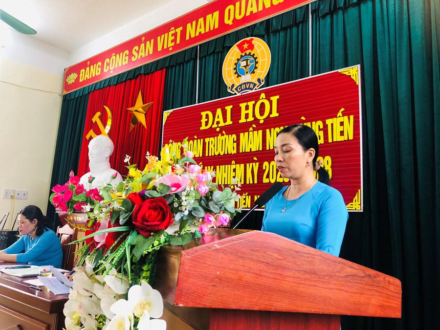 Tại Đại hội, các đại biểu được nghe đồng chí Vũ Thị Hoa- Chủ tịch Công đoàn khóa VIII nhiệm kỳ 2017-2022 báo cáo tổng kết hoạt động công đoàn nhiệm kỳ 2017-2022. Phân tích những mặt mạnh để phát huy, những tồng tại để khắc phục, tìm ra nguyên nhân và rút ra những bài học kinh nghiệm, trên cơ sở đó xây dựng mục tiêu, phương hướng nhiệm vụ nhiệm kỳ tới sát với tình hình nhiệm vụ của địa phương. Đại biểu nghe tham luận về chuyên môn của đoàn viên công đoàn.