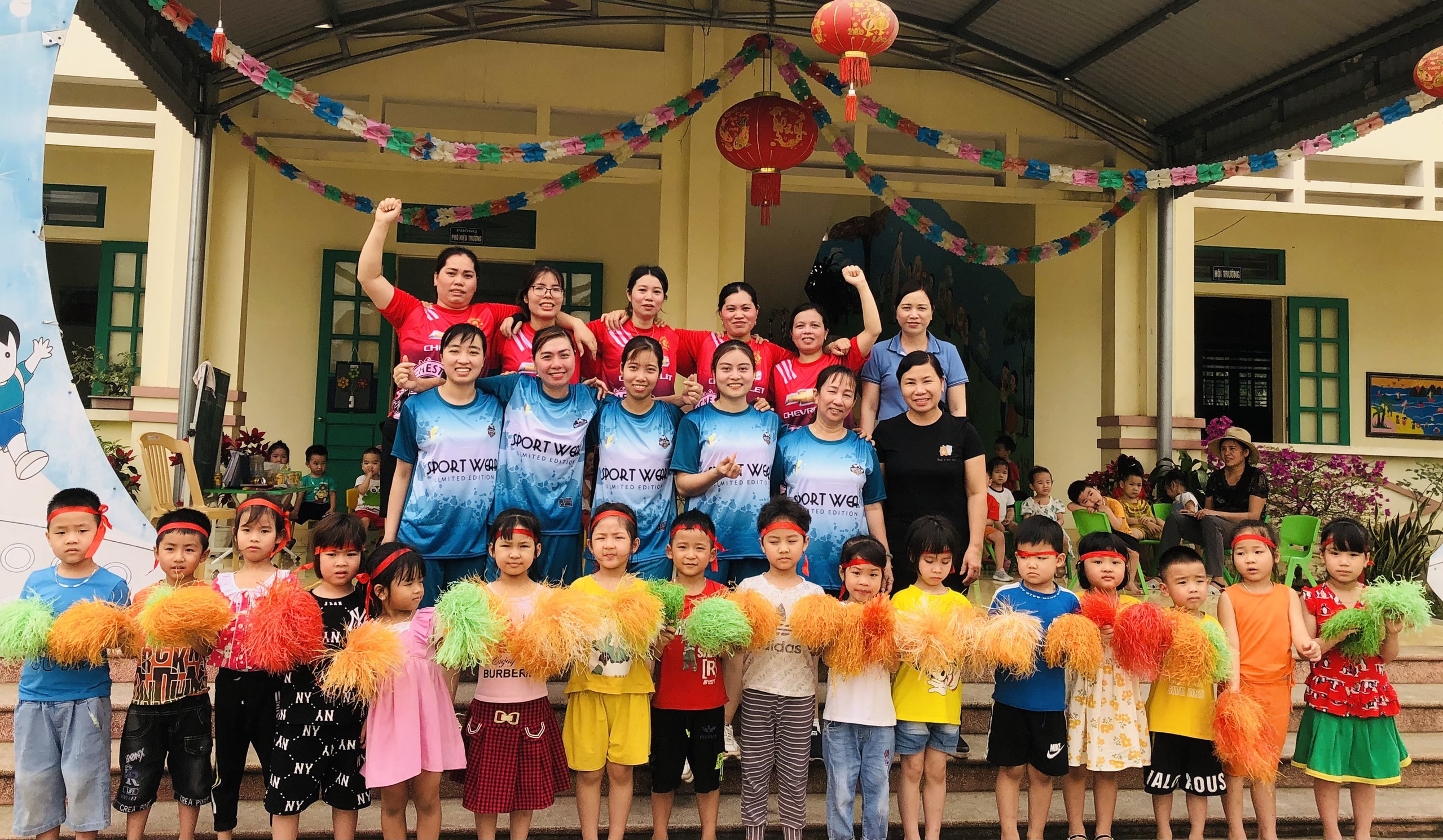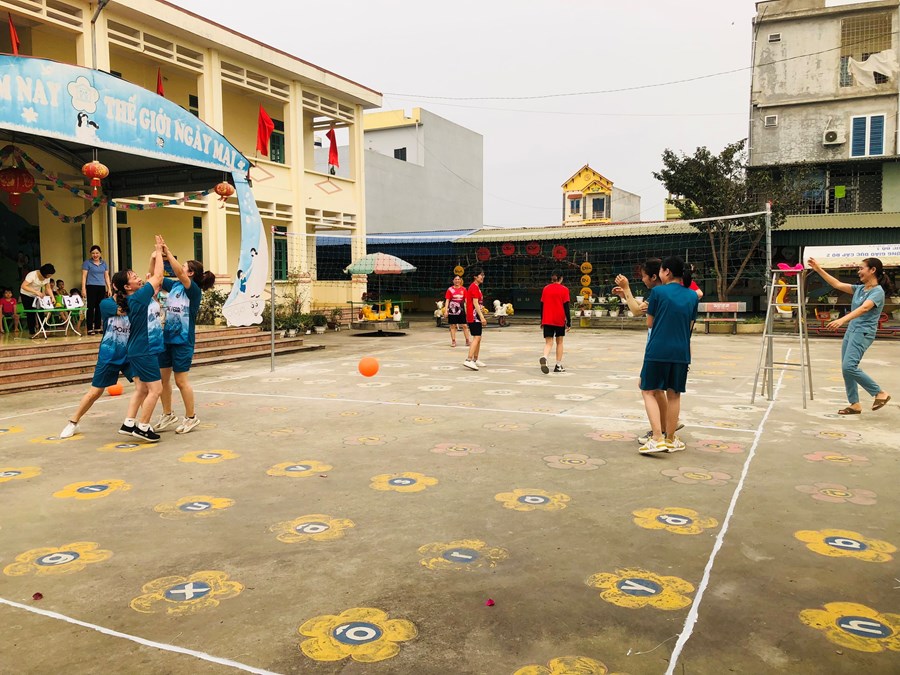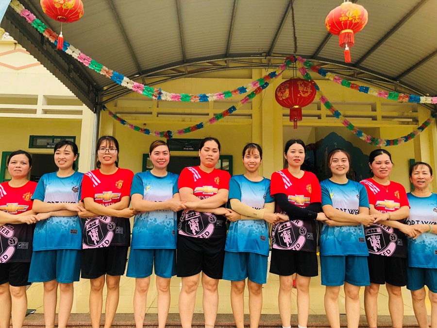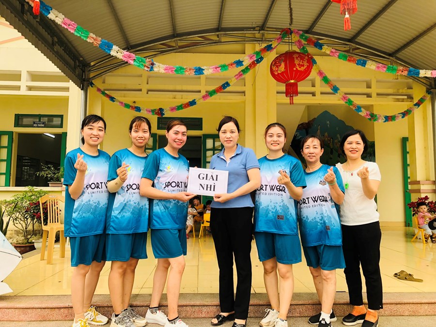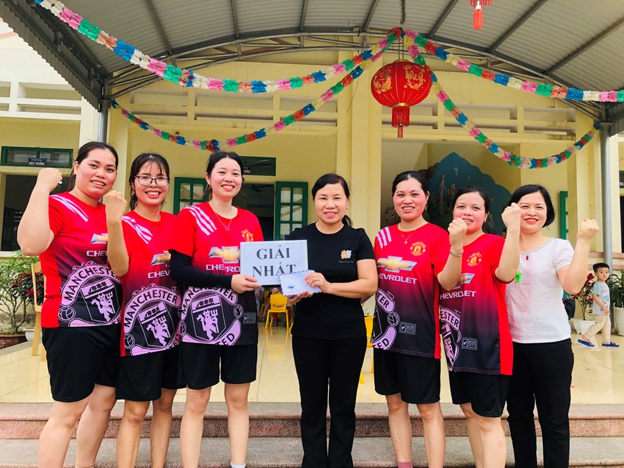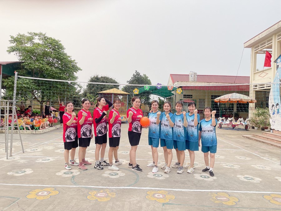 Tham gia giải thể thao giao lưu bóng chuyền hơi có sự góp mặt của các tổ Công đoàn: Tổ văn phòng, Tổ Mẫu giáo 5-6 tuổi, Tổ Mẫu giáo 4-5 tuổi, Tổ Mẫu giáo 3-4 tuổi, Tổ Nhà trẻ và Tổ nuôi. Trải qua vòng loại đã tìm ra các thành viên xuất sắc, thành lập 2 đội chơi: Đội bóng chuyền Đỏ và Xanh