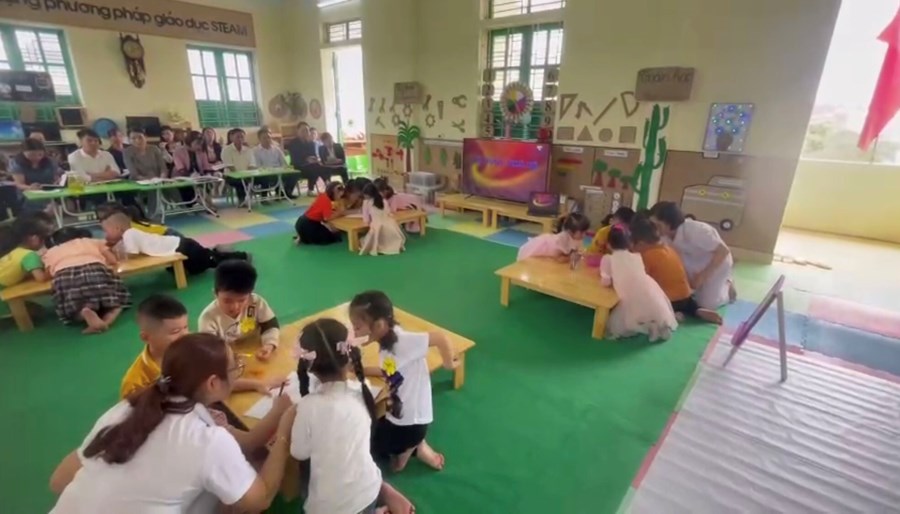 Tại buổi báo cáo giải pháp, các đồng chí tham dự đã được lắng nghe phần báo cáo lí thuyết của cô Phạm Thị Điến- Hiệu trưởng nhà trường; dự giờ tiết dạy minh họa của 2 cô giáo Nguyễn Thị Yến và Cô Giáo Nguyễn Thị Lơ thực hiện. Qua đó thấy rõ được vai trò của giáo dục STEAM và những giải pháp thiết thực, hiệu quả nhằm ứng dụng phương pháp giáo dục STEAM vào chương trình giáo dục mầm non.