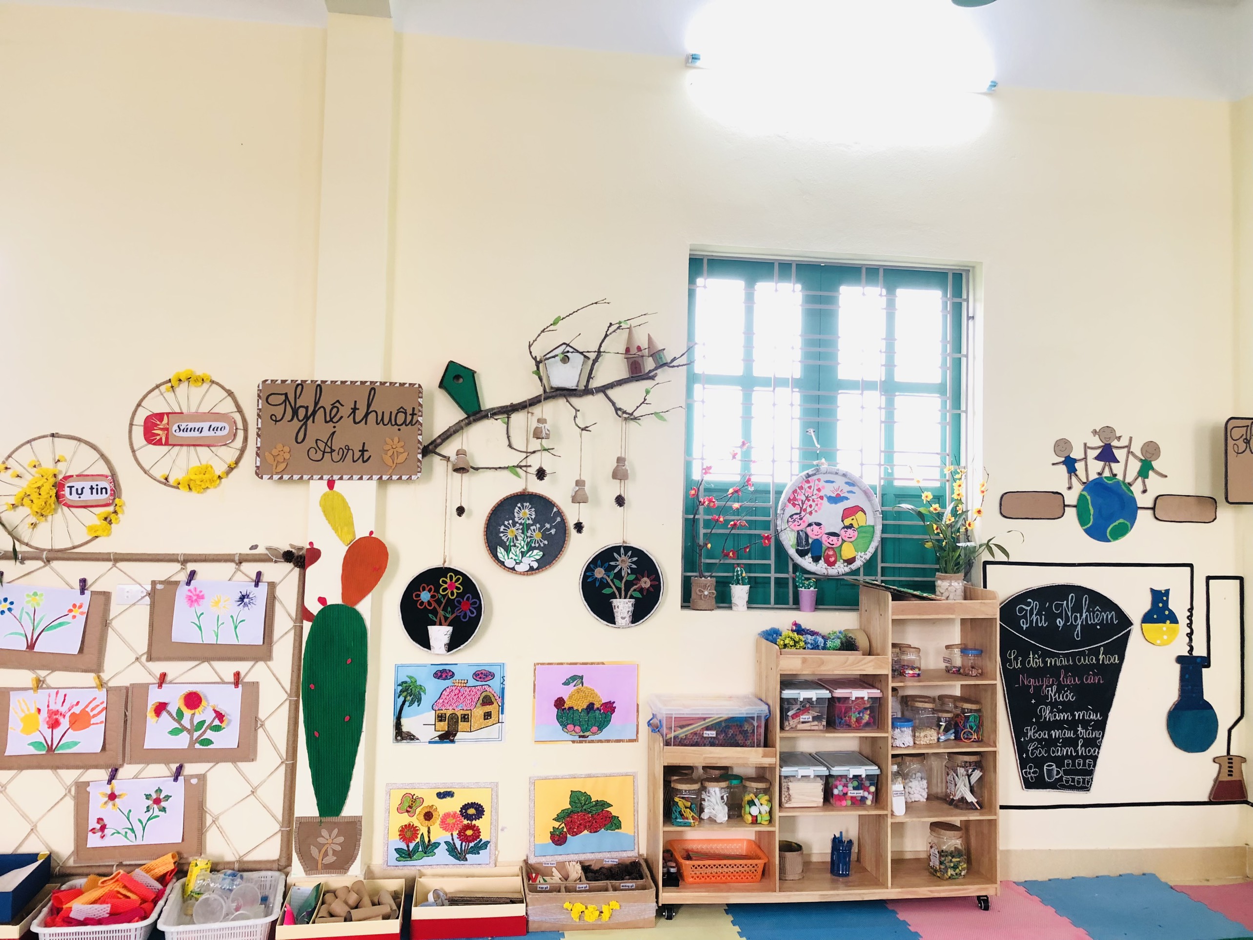 Ngoài ra, còn có rất nhiều các hoạt động khác được các cô giáo ứng dụng linh hoạt, khoa học phương pháp STEAM như: Làm bao lì xì, khám phá gió, sự đổi màu của giấy, Làm chuông gió, thí nghiệm, trứng chìm trứng nổi, làm ngôi nhà của bé từ các nguyên vật liệu khác nhau, các trò chơi với chữ cái, làm bưu thiếp tặng cô ngày 8/3 …