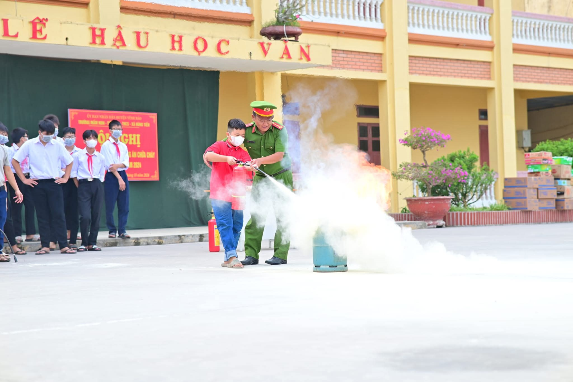 🔥🔥🔥Buổi thực tập được tiến hành nghiêm túc, đúng quy trình, đảm bảo an toàn. Thông qua thực tập giúp giáo viên, nhân viên và học sinh 3 nhà trường nắm vững các kiến thức cơ bản và quy định của pháp luật về công tác phòng cháy, chữa cháy. Đồng thời nâng cao tinh thần cảnh giác, tích cực phòng ngừa không để xảy ra cháy, nổ và khi có cháy, nổ thì tổ chức dập tắt kịp thời, không để cháy lan, cháy lớn.🎉